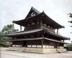 In the Asuka period (593–710), Buddhism was introduced into Japan from China, and Buddhist temples were built in the continental manner. From this time on, Buddhist architecture had a profound influence on architecture in Japan. In the Nara period (710–794), a capital city called Heijokyo was laid out in Nara in a manner similar to the Chinese capital, whereby streets were arranged in a checkerboard pattern. Horyuji Temple, built under the increasing influence of Buddhism in 607, is the oldest wooden structure in the world. It was registered as a UNESCO World Heritage property in 1993. In the Heian period (794–1185), the homes of the nobility were built in the shinden-zukuri style, in which the main buildings and sleeping quarters stood in the center and were connected to other surrounding apartments by corridors. Tosanjo Palace (1043) was an example of this style. Tea cottages, built when the tea ceremony became popular in the Muromachi period (1333–1568), employed a style called sukiya-zukuri, characterized by a delicate sensibility, slender wood elements and unornamented simplicity. Kyoto's Katsura Rikyu is a prime example of this style. People liked the harmony formed by the cottage and the landscaped garden. In the sixteenth century, when feudal lords dominated Japanese society, many castles were built. Though constructed for military defense, these castles were also used to enhance the lords' prestige. A few of them remain today, admired especially for their tenshukaku (watchtowers). The living rooms inside the castles were tastefully decorated, and rooms for reading and waiting were developed in a style known as shoin-zukuri. The Shiroshoin at Nishi-Hongenji in Kyoto, a National Treasure of Japan, is an example of this style. After the Meiji Restoration, Western architecture was introduced in Japan. Stone and brick came to be used in construction. In more recent times, the trend is toward the construction of buildings that incorporate aspects of traditional Japanese architecture, using modern technology and new materials. Interior Design Concept
