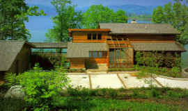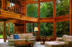 cedar and the heavily forested setting.